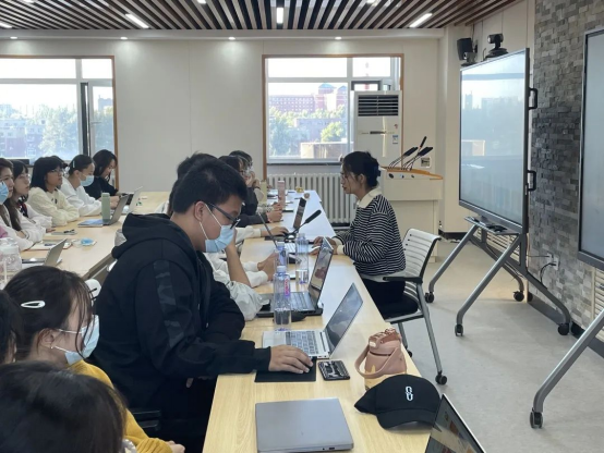 随后,第八届团委学生会首期学工技能培训正式开始。首先由宣传信息部工作人员姜洋洋为大家分享排版的基本方法。她详细地为大家介绍了在线排版工具“秀米”的基本功能以及如何挑选和使用样刊模板。接着,她通过修改“问题排版”,向大家现场展示了排版的基础操作和要求,让大家更加直观地理解和掌握了各种排版技巧。姜洋洋耐心细致的讲解让大家受益匪浅,在场工作人员及志愿者也认真做好了相关记录。