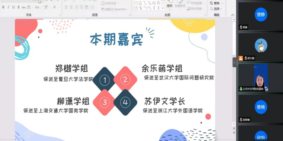 2019级本科生郑樾、余乐萌、柳潇、苏伊文为大家分享保研过程中的心得体会。本期分享会由2021级本科生温乐言同学主持,赌博游戏