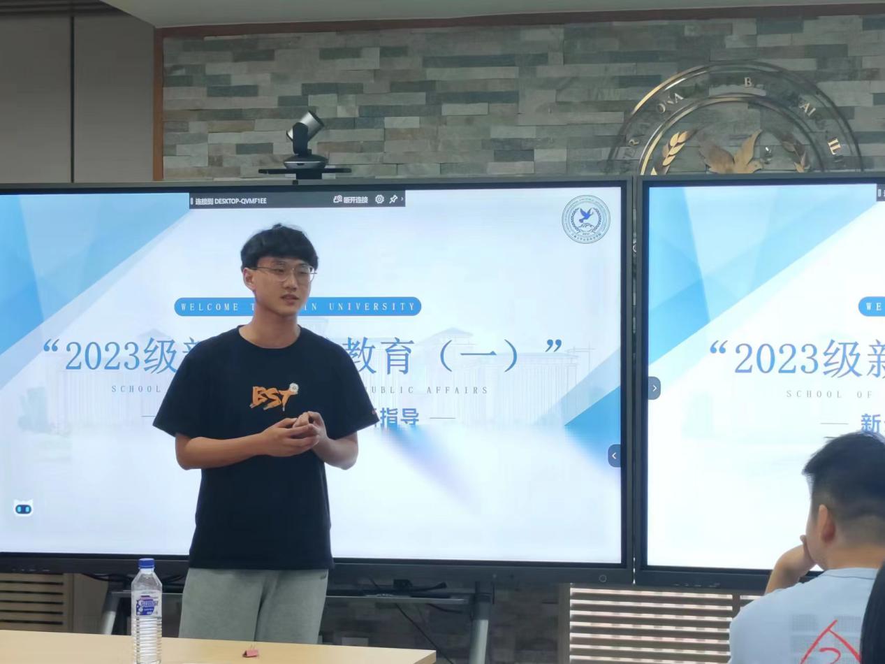 在吕振羽楼818多功能厅组织开展了新生见面会,2023级新生辅导员单葆龙老师,新生辅导员助理郑含婷、秦越同学和2023级全体新生参加了此次会议。
