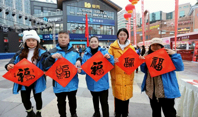 2月3日,吉林大学“春风送暖入蜀冬”社会实践小队来到了自贡市梵华1939商业中心协助开展迎春游园活动。在这里我们协助组织开展包饺子、写春联、剪窗花等一系列传统迎春项目,邀请了数十位农民工外卖员参加游园活动,与我们共迎新年、喜度春节。活动吸引了许多市民,我们积极引导市民与农民工外卖员沟通,增进互相理解与认同,现场气氛融洽,共计覆盖2000余人次。