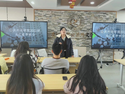结合任课教师的教学反馈,乔蕊老师指出同学们在平时课堂中存在的一些问题和不足,鼓励同学们课上积极发言,与老师同学多互动多交流。大学时光宝贵而短暂,希望同学们珍惜彼此的情谊,班委会组织丰富多彩的集体活动,同学们积极参与,做到劳逸结合,放松身心,增进感情。