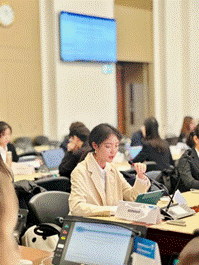 除了实地参观外,联合国相关负责人还详细地向大家介绍了可持续发展目标议题,并梳理了国际会议、磋商谈判的流程。在模拟联合国活动中,同学们扮演不同的国家角色,选择不同侧重点的可持续发展议题,将所学理论知识与实践进行了良好地结合。通过这些特色实践活动,同学们对联合国谈判模式、各国间的国际往来等有了新的体会,同时也进一步提升了自我的国际理解力与胜任力。