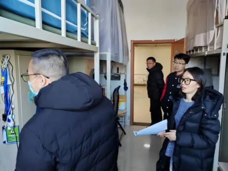 党委书记杨民、行政副院长于洪生、党委副书记兼副院长王力、学生工作办公室主任张淑艳、辅导员单葆龙、研究生秘书于晴前往南苑三、四、九公寓,北苑二、三、四公寓,文苑二公寓等全部本科生、研究生公寓开展新学期寝室安全检查工作。