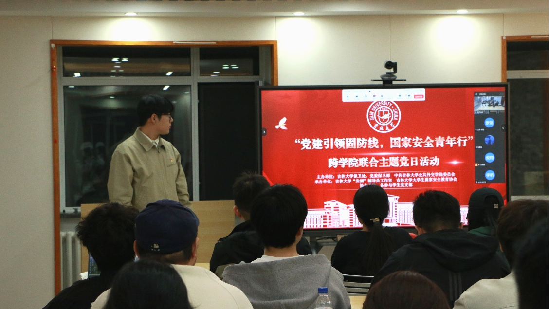 联合主题党日活动在2025年4月10日顺利举行。本次活动以线上和线下相结合的方式开展,线下会场为吕振羽楼818会议室,线上通过腾讯会议进行直播,400余名师生党员全程参与了本次活动。国家发展与安全研究院硕士生党支部副书记、吉林大学大学生国家安全教育协会会长王俊翔担任本次活动的主持人。