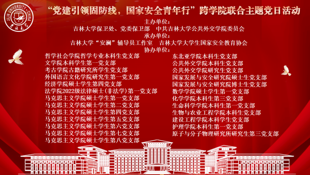 委员会主办,吉林大学“安澜”辅导员工作室、吉林大学大学生国家安全教育协会承办,我校23个学生党支部协办的“党建引领固防线,国家安全青年行”跨赌博游戏