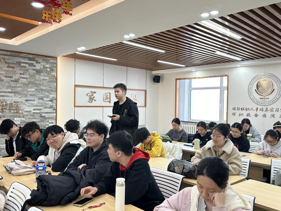 外交学专业2023级团支部于吕振羽楼818教室组织开展“关注外交新动态,培养青年新视野”主题团日活动。活动由23级本科生刘明冼主持,23级1班团支书赵雨彤、2班团支书张湲悦做分享。
