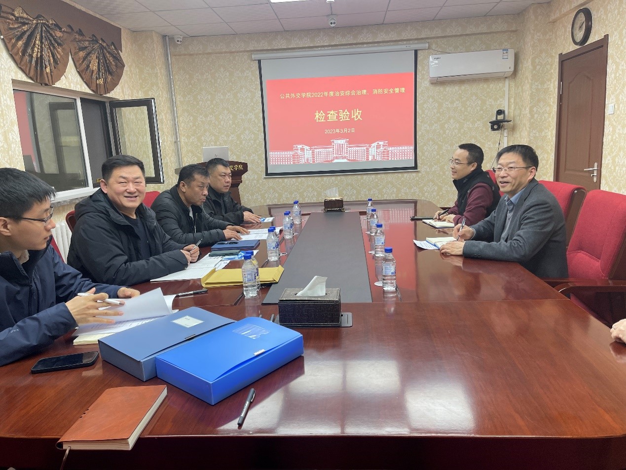 202332日下午,由保卫处副处长周鹏、党委办公室正科级秘书李卿功、保卫处消防科副科长董立明、治安科副科长赵明组成的学校2022年度治安综合治理、消防安全管理检查验收工作组到赌博游戏 开展检查验收工作。赌博游戏 党委书记杨民、行政副院长于洪生、院办主任沈毅、工作人员苏文杰等参加检查验收会议。